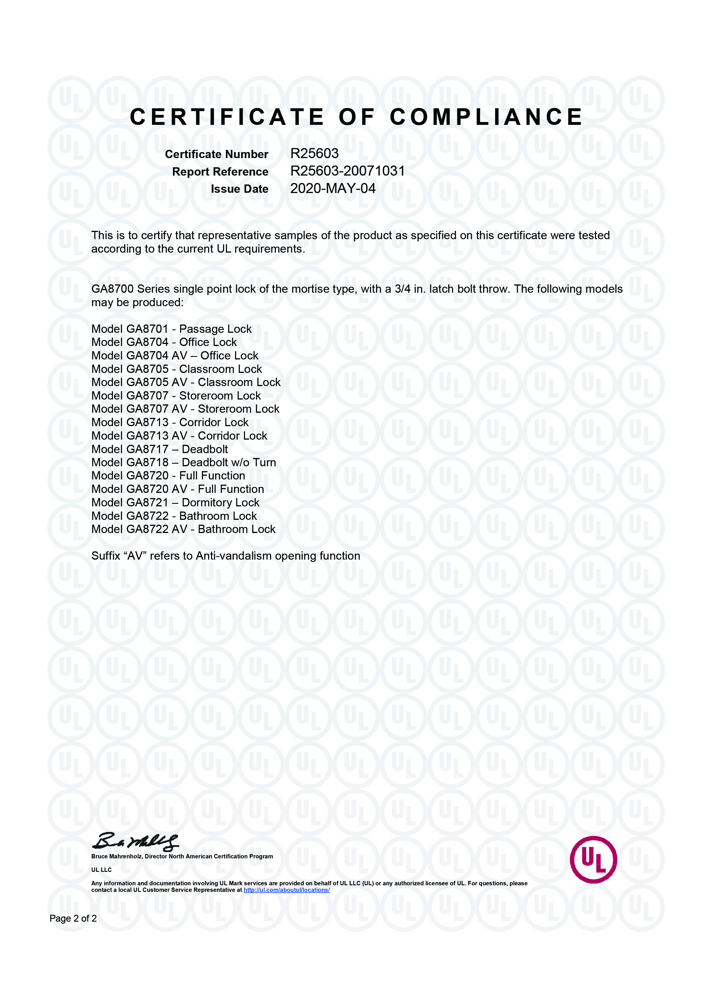 浙江堅迪五金制造有限公司始建于 1995 年。自 2003 開始,公司致力于高標準商業鎖的研發工作,并于 2006 及 2007 年,8700 插芯鎖系列獲得美國國家標準 ANSI A 156.13-2005 一級、ANSI A 156.2-2003 二級和美國 UL 10C3 小時防火測試認證。自 1998 年以來,公司不斷提升產品和客戶服務品質,并獲得了 ISO 9001 的認證。